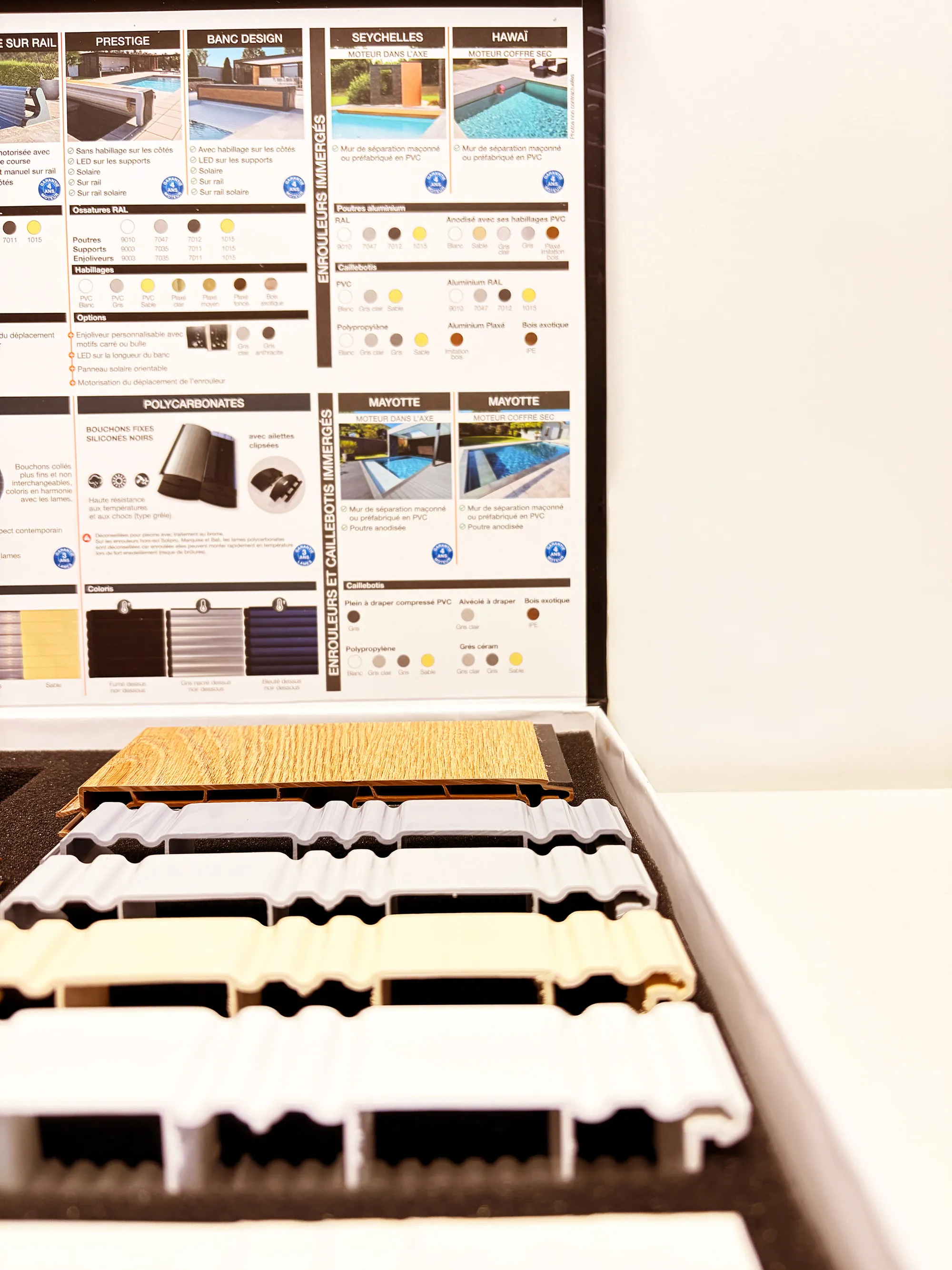 Avec notre catalogue tarifaire, et sur demande une clé USB contenant tous nos documents de communication (fiches, notices...) + une application 3D permettant la configuration de nos produits.