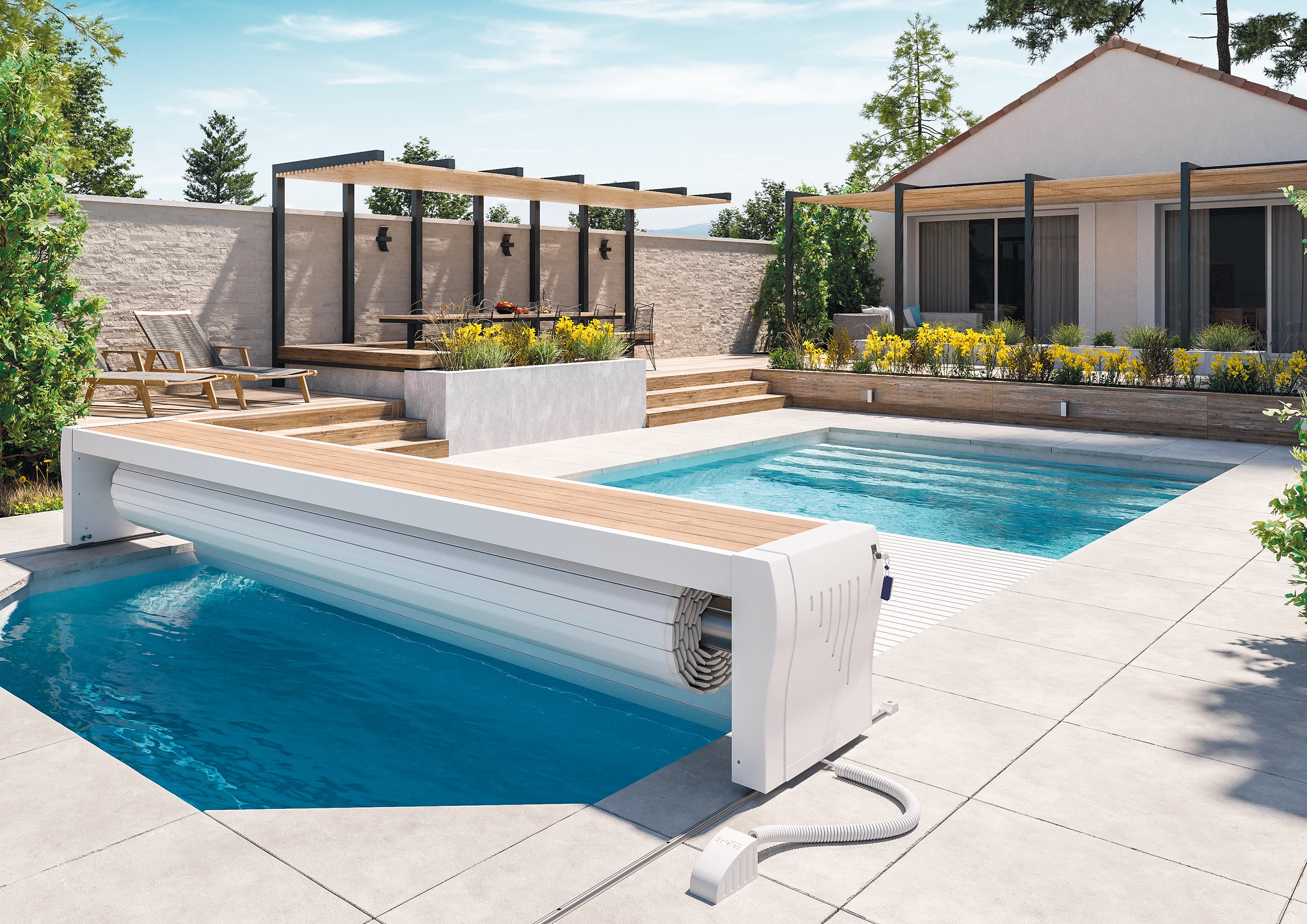 Notre gamme de couverture automatique hors-sol pour piscines offre une sécurité maximale pour les enfants et les animaux de compagnie. Fabriqués en France à partir de matériaux de haute qualité, nos volets sont robustes, durables et faciles à utiliser. Ils s’adaptent parfaitement à toutes les formes et tailles de piscines, garantissant ainsi une protection optimale. De plus, nos volets peuvent être facilement enroulés et déroulés pour un accès facile à la piscine. En choisissant nos volets de protection, vous pouvez être assuré que votre piscine sera sécurisée pour les années à venir.